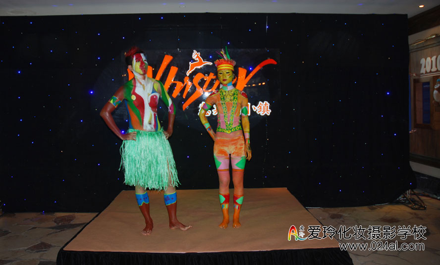 在万科惠斯勒小镇的开盘仪式上,爱玲化妆学校受邀为其主持人、模特、演员化妆造型。万科惠斯勒小镇完全以北美风格进行打造,而在开盘仪式上为凸显其风格,所有的模特演员均以北美复古的风格进行装扮,印第安人造型的男女随处可见。此造型装扮需要在身上、脸上涂抹大量的燃料,而如何把燃料涂抹的真实、自然便是考验学员的一大难题;同时,在其脸部的妆容上,也要遵循北美印第安人那种狂野的气质,眼睛、脸颊、嘴部的勾画都需符合印第安人的特点,如此难度的装扮,使学员在此次实践过程中得到了很多收获。