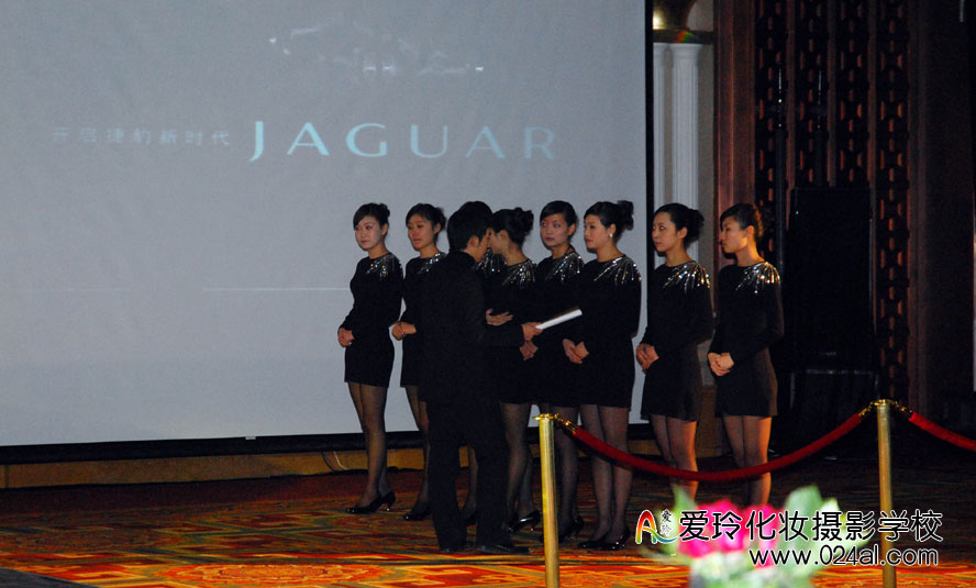 捷豹(JAGUAR)-----拥有伟大创想的头脑,也一定有非凡品位.同样来自英伦,坚守同样价值,捷豹以菁英眼光重塑汽车美学的典范。近日捷豹新车发布会在万豪酒店隆重召开,爱玲化妆学校担任此次活动的高端礼仪的化妆造型,在万豪酒店里单独设立出一个化妆间,学员们在那里为礼仪们化妆。发布会现场前来的顾客都是高端销售者群体,在礼仪接待上需求高水准的服务,学员为礼仪所设计出来的妆面也要达到高端级别的水平。在发布会结束后,主办方对爱玲化妆学校非常满意,想继续与我们保持长期合作。